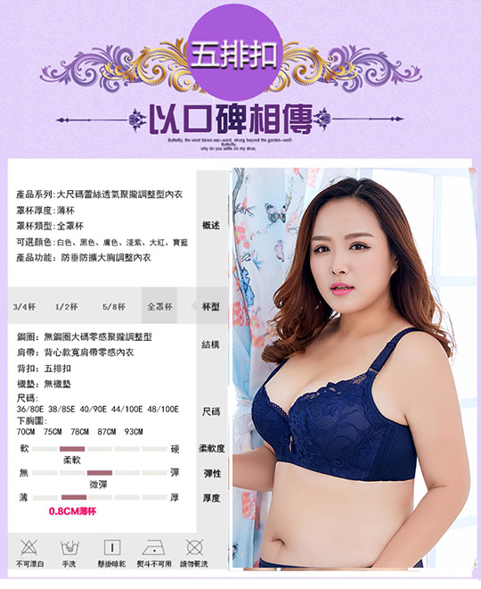 ■品名:大尺碼蕾絲透氣聚攏調整型內衣