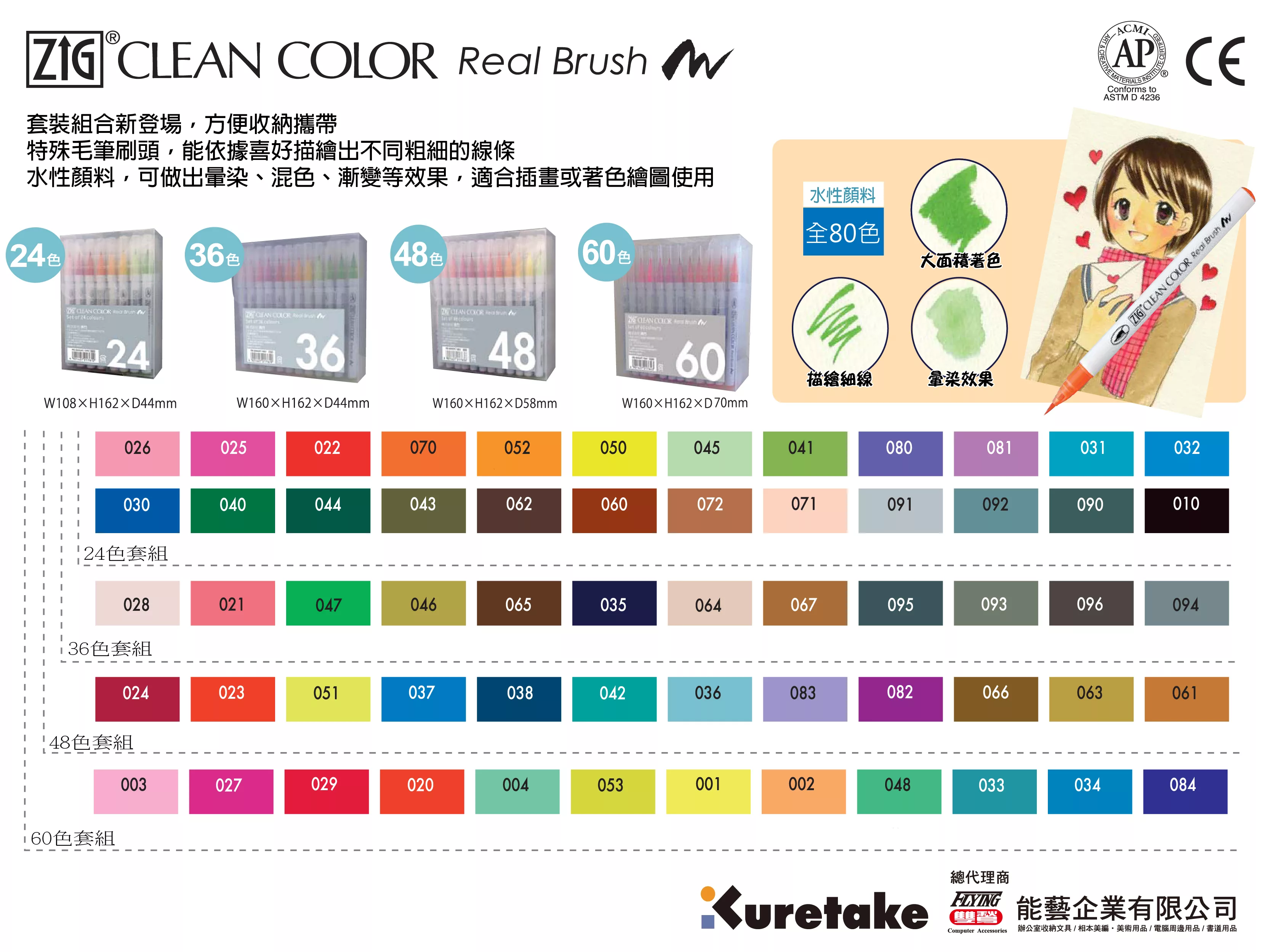 【Kuretake 日本吳竹】 ZIG 彩繪毛筆 60色-盒![]()