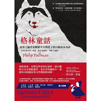 「本書選出的五十三則童話,是格林兄弟的《兒童與家庭童話集》中,我認為最精湛的故事。我盡力揣摩並傳達故事精靈所發出的聲音,……以及傳述作品被格林兄弟保存下來的其他說書人所做。我由衷希望,無論是說故事者,或是讀者,從此之後,都能過著幸福快樂的日子。」 ──菲力普?普曼