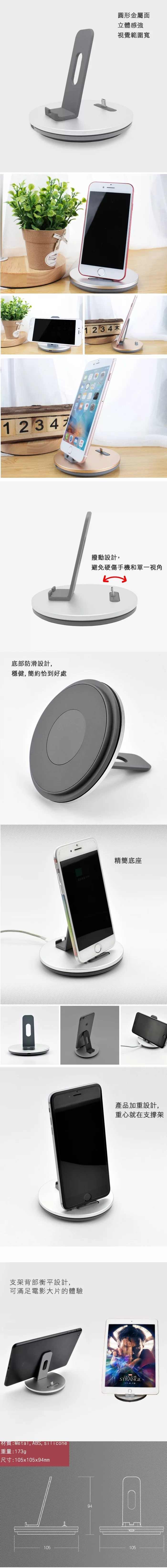 二合一鋁合金手機充電支架 圓形穩定手機金屬支架 Apple 銀色 評價